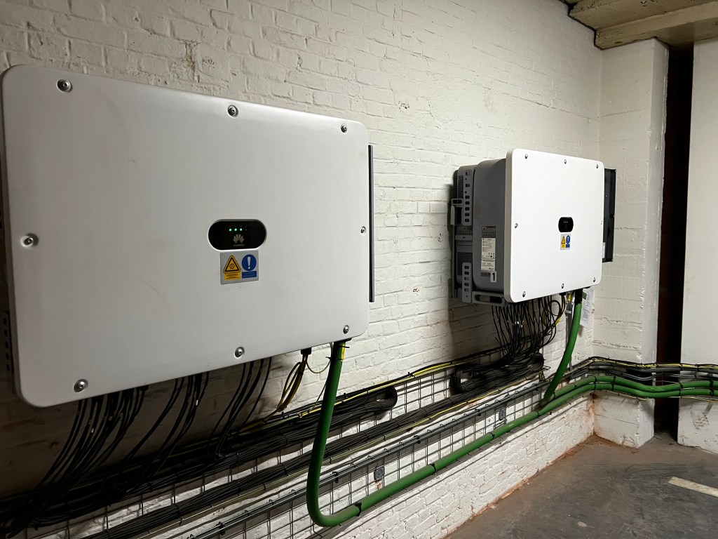 Om de opgewekte gelijkstroom om te zetten naar de bruikbare wisselstroom, maken we gebruik van drie krachtige omvormers. Deze omvormers hebben samen een totaal vermogen van 260 kilovoltampère, wat ervoor zorgt dat de opgewekte energie efficiënt wordt ingezet in ns winkelcomplex.
